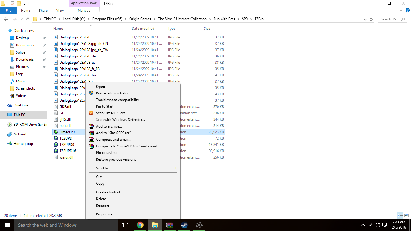 Next idea. When you right-click on your exe, before you go to the properties - can you give me a screenshot of that?