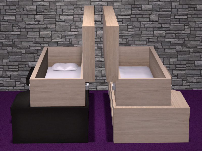 What needs changing is the default base texture. You've got a black wood as a recolor. Lee said the default black might be hers? None of your recolors have that lighter spot which is causing the striped look. The table is mapped to the corner opposite where the bedding would've been on the base texture. The wood texture? It's one of yours.. slightly edited by me as a test recolor. Smile Glad you like the new table. I wasn't sure about the extra drawers at first, but if Ikea made that table I'd order 2. One for each side of my bed, no matter what Lee thinks of that idea. (Me sleeping alone and all, lol.)