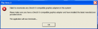 This IS very weird to me - because I've now got 3 problems with the directx9 (which isn't the real problem 95% of the time). And none of them seem to be for the usual problems.