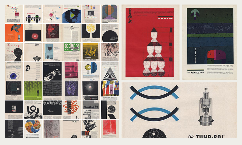 The designs are very cool and all this mid-century stuff is still quite in. There are 300-plus images from the 50s and 60s from designers such as Paul Rand for Westinghouse; Willi K. Baum , illustrator Steve Chass, as directed by ad agency Carpenter, Matthews & Stewart for ITT. Get a cup of tea and a biscuit and just browse through these - full of design inspiration.