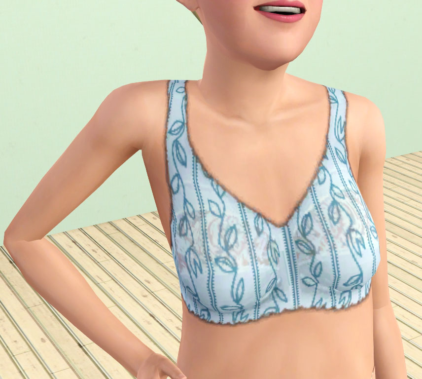I don't know if it was an accident, or what, but EA left the original elder bra texture almost white. Meaning, no matter how dark the color was (see below), it would come out extremely bright. So, I went ahead and default replaced this texture with the one I used for the adults and teens.
