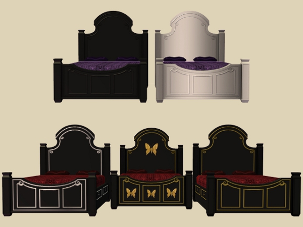 6 Apartment Life wood and 5 Black and Silver recolours of the Sims 3 'Pampered Pedro Double Bed' and 3 Apartment Life wood, 1 Black and 1 Silver recolour of the Sims 3 'Federal End Table' converted by TheNinthWave.