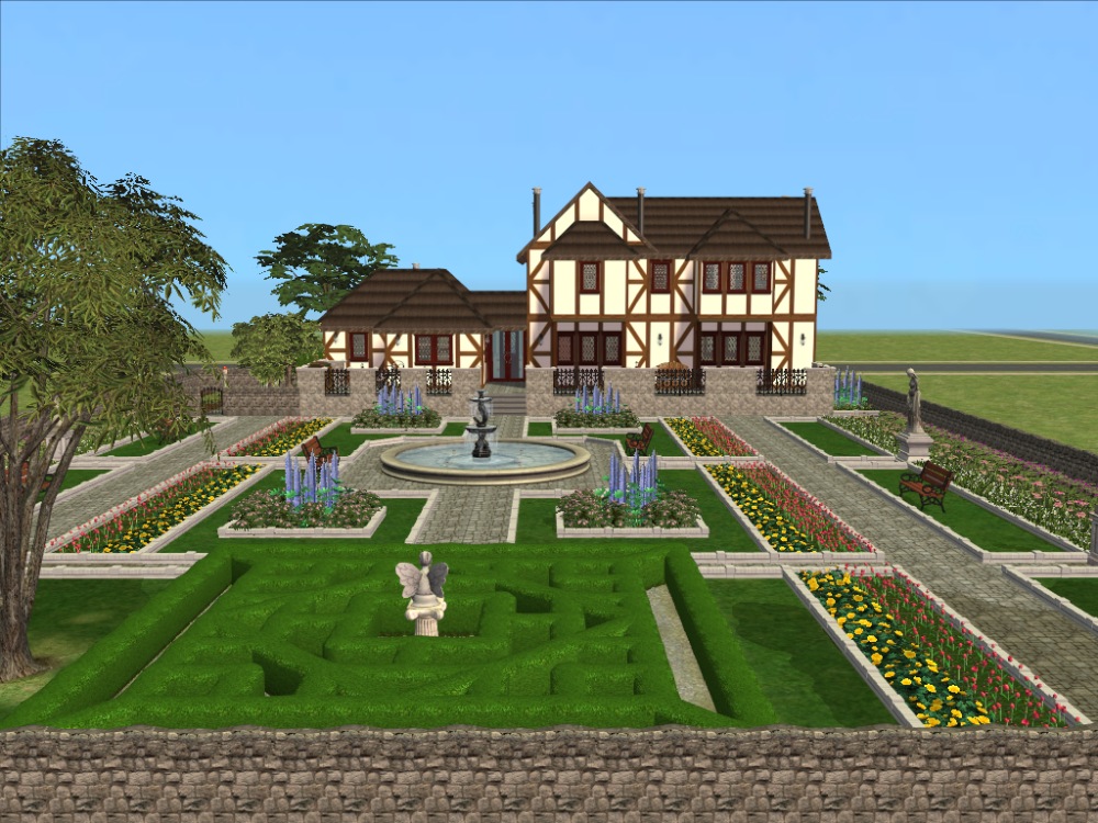 Boleyn Manor is a large Tudor house and sits on a large plot, with far-reaching views across the English countryside. It is set in a beautifully landscaped garden. The garden layout was inspired by Hampton Court Palace in the UK. The Knot Garden is traditionally found in Tudor gardens.