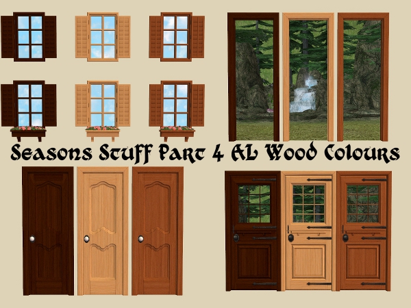 3 recolour of the Seasons, Fragrancer 8000, Just Visiting Flower Box, Storm Proof Hatch & The Wooden Curve using Apartment Life wood colours.