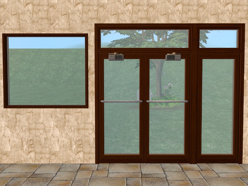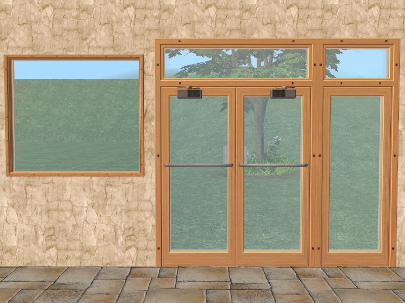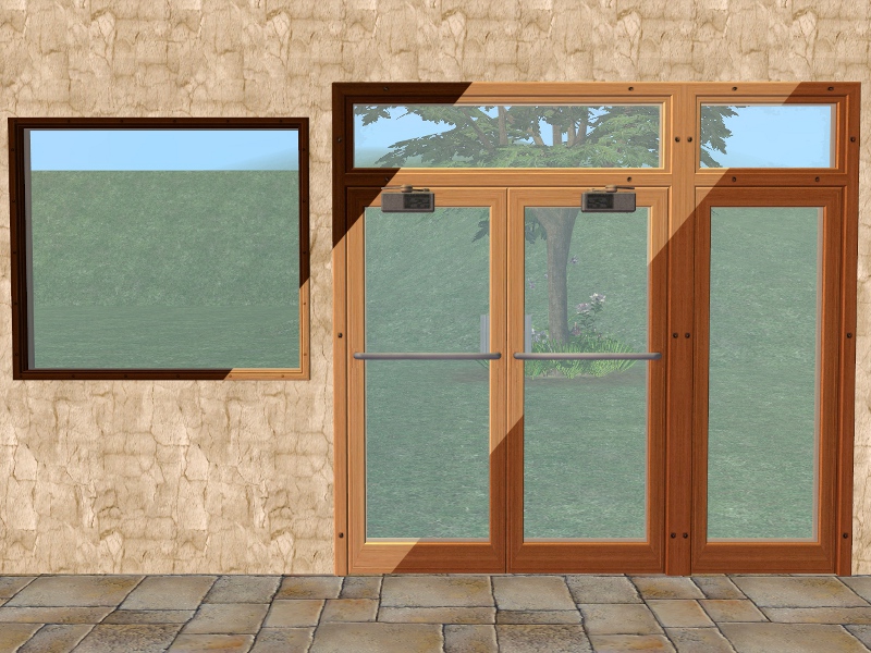 3 Apartment Life wood recolours of the Independent Expressions Door & Windows. The door recolours the "Big Entrance" Shop Window and the "Showcase" Shop Window. It will also recolour any other doors or windows Repo linked to the original, such as the "Independent Expressions" - Expansion Sets by Marylou and the Privacy Window by TheNinthWave.