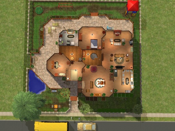 Children's room (cot, changing table, toys), bathroom, master bedroom, room with 2 single beds, 1 room with single bed, room with library, computer, chess.