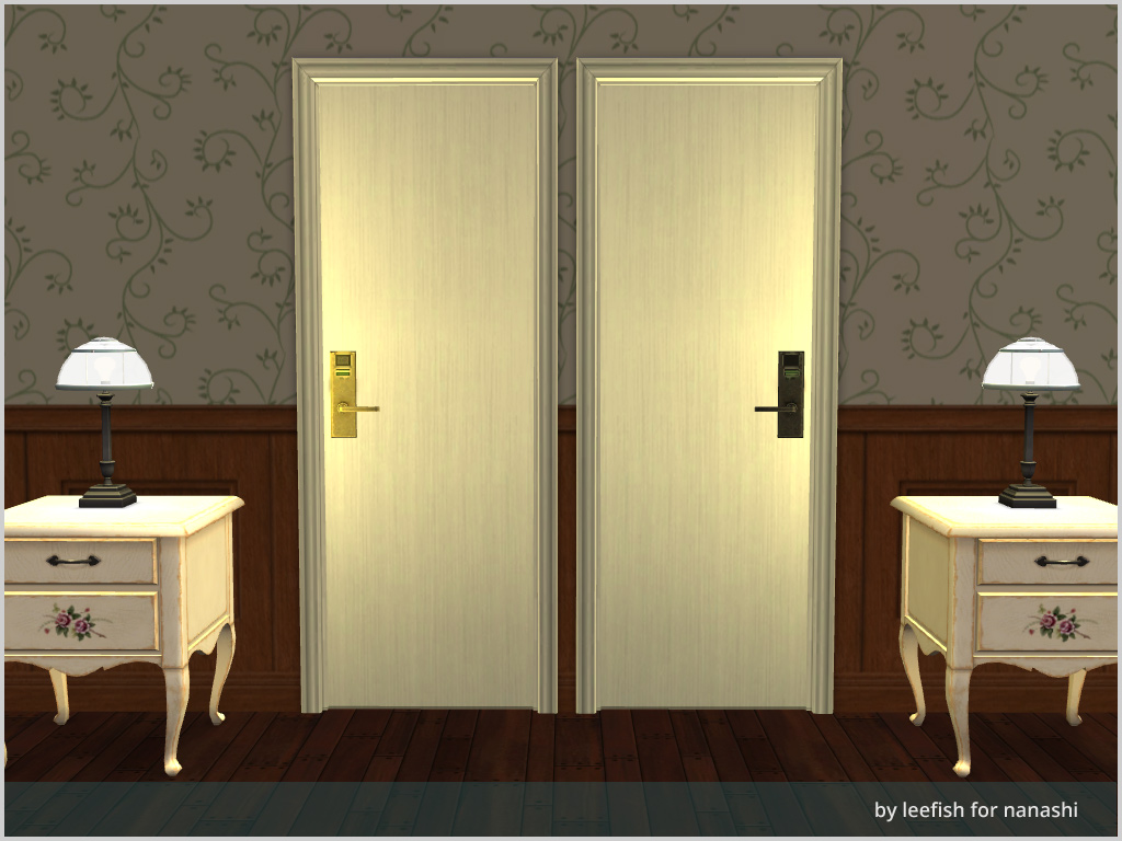 Requested by Nanashi - a variation of the BaseGame Value Door - it is repository linked to the Value Door (and so will use all recolours of that door) with the Hotel door handle as a recolourable subset.