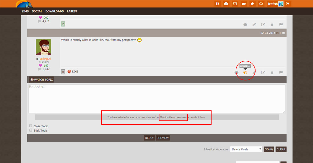 As you may know, on leefish we have the "Mention Me" functionality. You put an @ in front of a username in your post and the "mentioned" person gets an alert.
