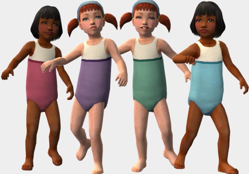 So here are 7 swimmers for the little girls and 7 trunks for the little boys. They are made with the meshes by fakepeeps7 - the queen of toddler clothes!
