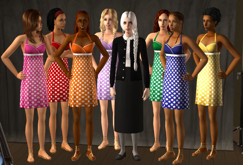 The 7 girls use the first 7 face templates in CAS. The skins are the 4 EA skin colours, plus 3 more of the tween skin colours that strawberry did. Hair by Almighty Hat.