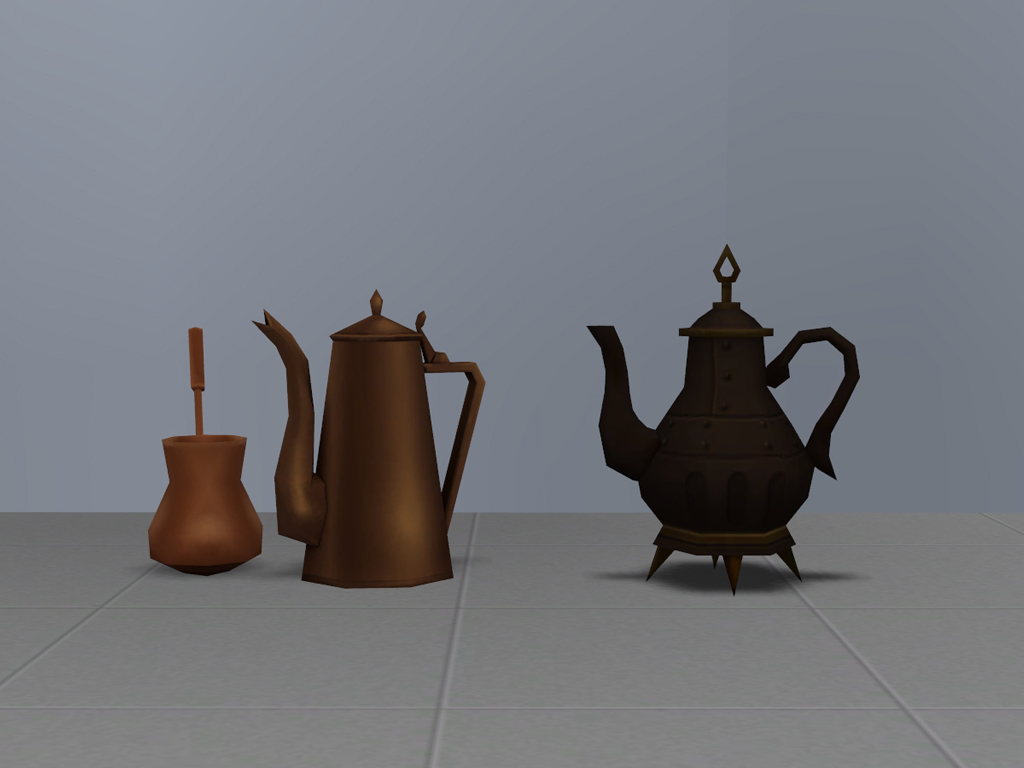 I hope you are having a wonderful day! I had a peek in the Secret Scuba thread for inspiration and I noticed you like clutter. So I went of to TS4 to see if I could find some nice meshes and I found these lovely pots. Apparently the left one is a coffeepot and the right one a teapot, but I'm sure they don't mind if you put tea in the coffeepot or the other way around.