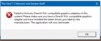 Hi, I have a new system and Sims 2 Ultimate Collection won't run. I tried a fix by adding the card to my video config but it still isn't loading. My card is NVIDIA 1070. Attached is an image of the error and my log.