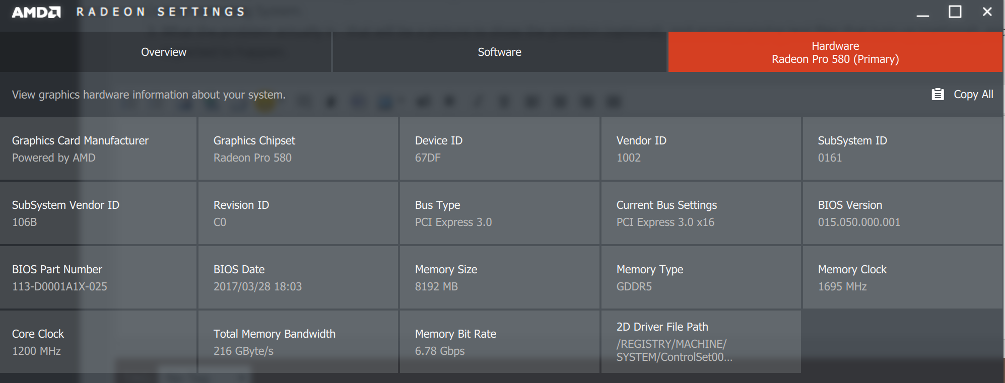 I have looked at the config-log but it doesn't say my video card is missing. I am attaching it as per instructions. I am also attaching a couple of screenshots of info about this set-up's video card that may be useful? It's a Radeon Pro 580