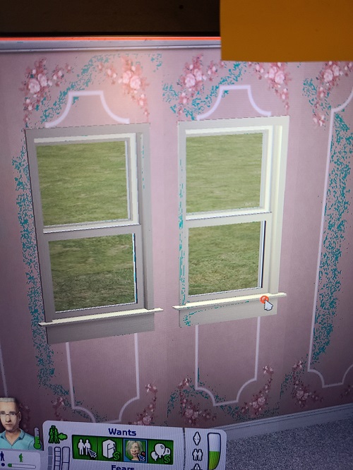 As you can see in the attached picture, there are squiggly blue lines that show up when I'm playing. They also show up on some but not all neighborhood buildings. These lines show up in game in regular and build/buy mode, but not when I use the in-game screenshot camera or printscreen, hence the phone picture. I suspect this is somehow related to the lighting but I'm not sure exactly how.
