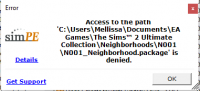 Also, don't try to run TS2 and SimPE at the same time. When TS2 is open, it locks all files that it uses for access by other programs. For example, if you open one of the config files in a text editor while the game is running in the background, you can edit the file all you want, but you will NOT be allowed to save it, because TS2 is currently using it.