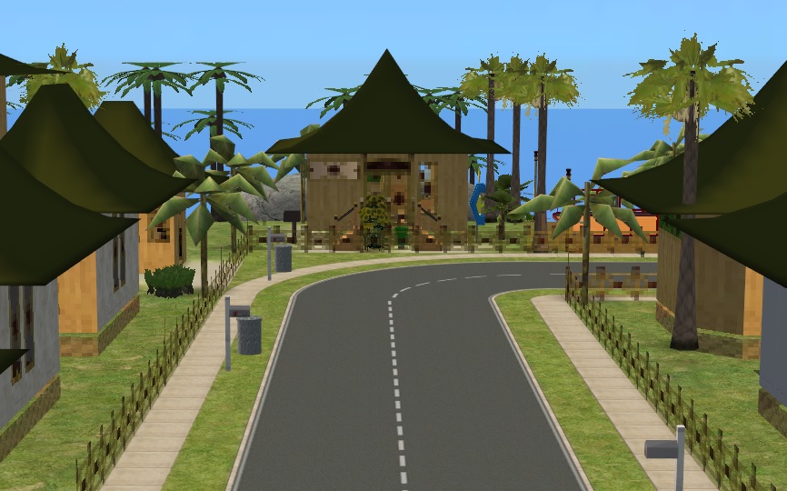 Uhh.. why everything has to go the hardest way.. Okey, now the problem is neighborhooddecoration.. those maxis BV palmtrees are simply too huge for as small terrain as this is .. and that old palmtree just looks like crap in lotview. So downloaded Alex_Stanton's palmdecos, only couple of those were usable (not those with white lane in textures all over the tree), just to notise those cannot be placed on lot, water or road... okey.. so SimPe here I come.. made those changes to those few trees, and as that makes even more CC, I cut all the recolors off the CC-list...