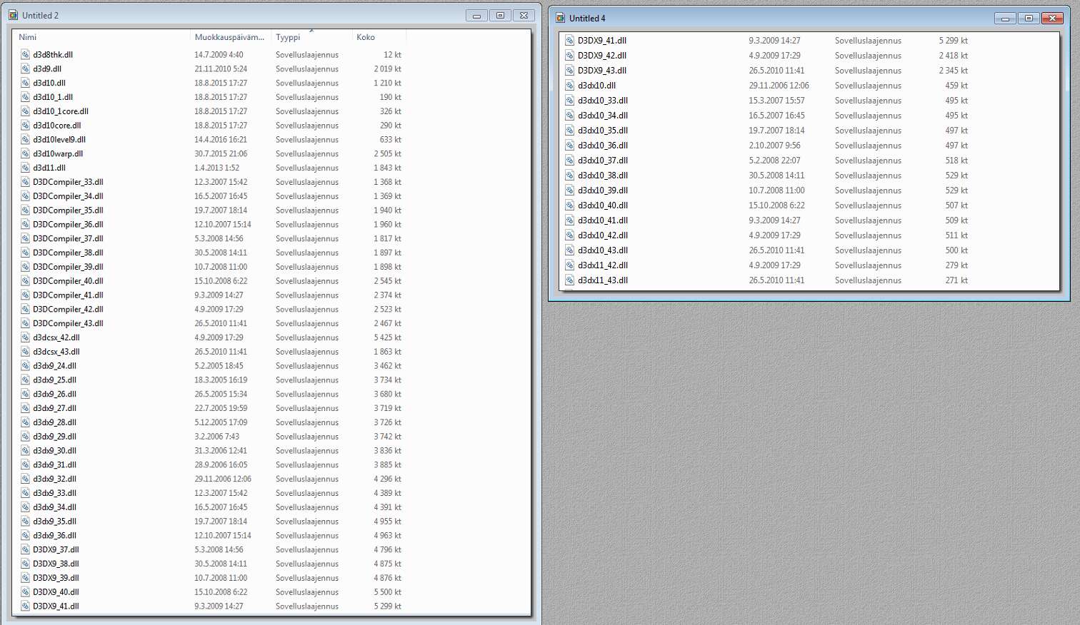 I have attached a System32-folder screenshot with all the "d3d....dll"-style files I could find there.