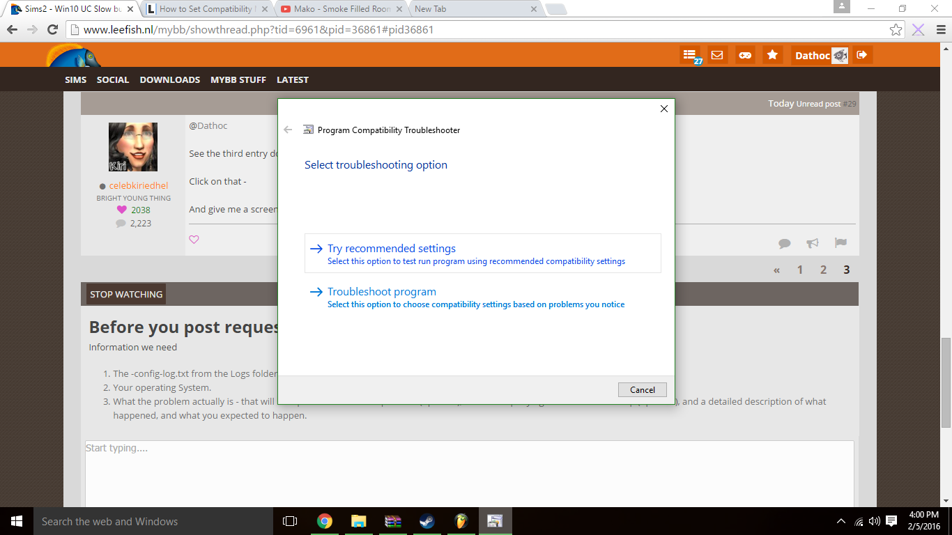 See the third entry down that says 'Troubleshoot compatibility" ?
