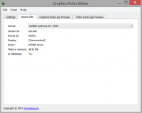 *Also, while I am in the Graphics Rules Maker, it is showing 'disconnected' for display under the device info tab when I have my NVIDIA card selected from the drop down. What does this mean? It sounds concerning! See attached screenshot.
