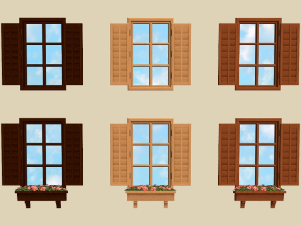 3 recolour of the Seasons, Fragrancer 8000, Just Visiting Flower Box, Storm Proof Hatch & The Wooden Curve using Apartment Life wood colours.