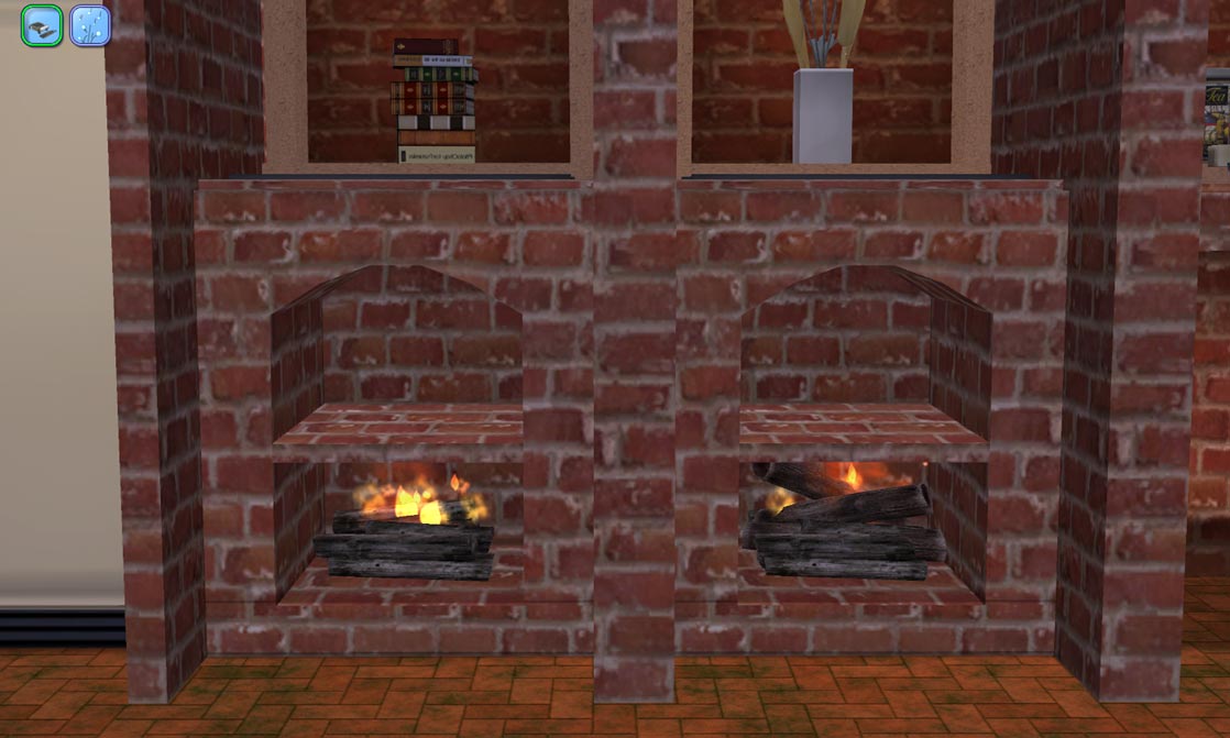 I'm working on a stove and wanted to add the fireplace logs and fire effect. That much I knew how to do- See pic! The one on your left has the logs and effect added..the one on your right is put over an invisible fireplace. (I prefer mine, lol.)