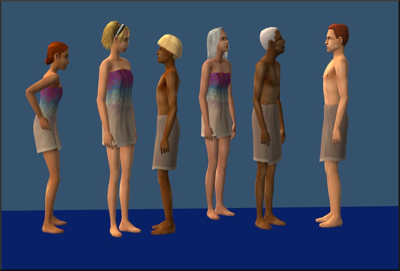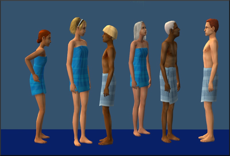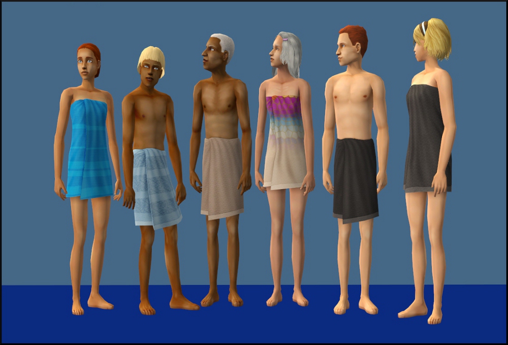 If you like a little more variety you can download all three of the colors and mix and match them. You can only have one color towel for each sex and age group though so you'll have to delete some of the files before putting these in your downloads folder if you go that route. Pick ONE for each of these: