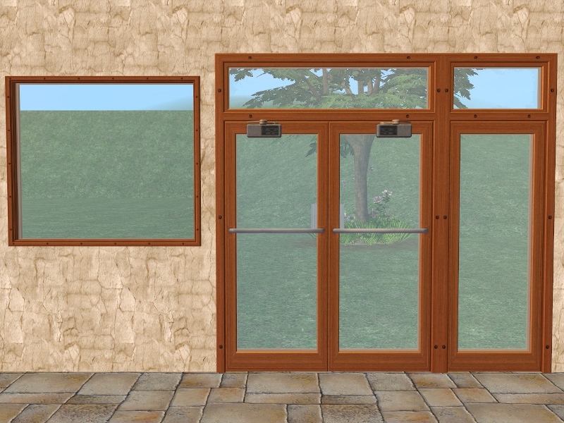 3 Apartment Life wood recolours of the Independent Expressions Door & Windows. The door recolours the "Big Entrance" Shop Window and the "Showcase" Shop Window. It will also recolour any other doors or windows Repo linked to the original, such as the "Independent Expressions" - Expansion Sets by Marylou and the Privacy Window by TheNinthWave.