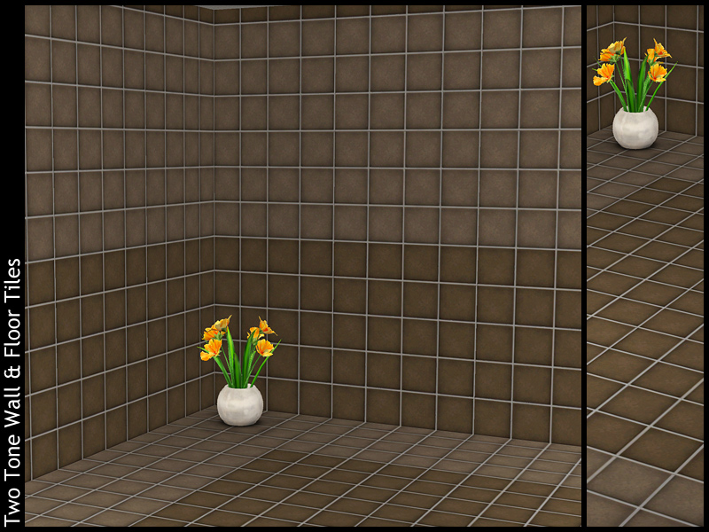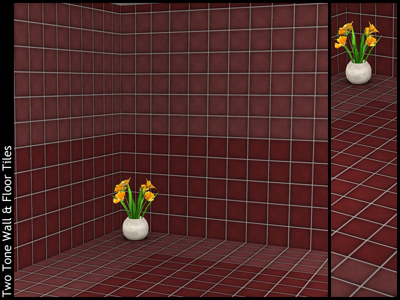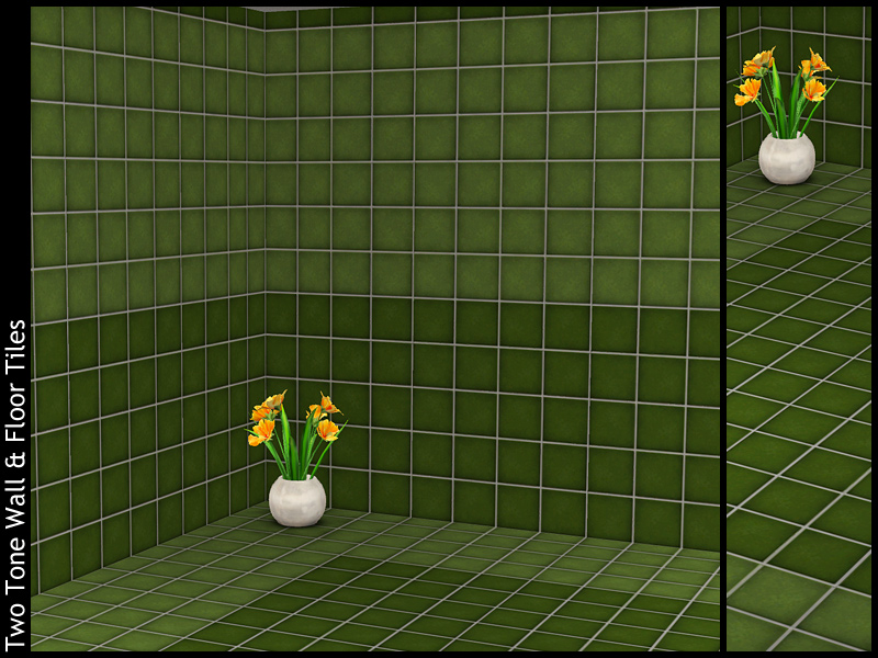 Two Tone Tile Wall & Floor Set - Consists of 6 two tone tile walls & 12 matching tile floors. These walls use the same tile in my previous sets. I made these at the same time as the others and totally forgot to re-upload them. In fact I am not entirely sure if I ever uploaded them.