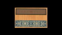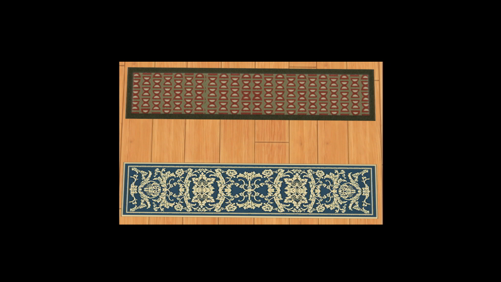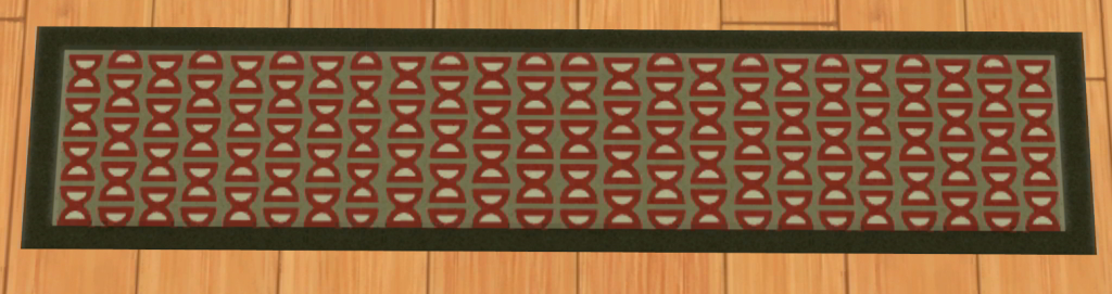 I would try one with squares. Looking good so far, I think you have a bevel on the red one? If so, I would turn it down a little bit (or off). I see that pattern as more of a rag rug, so the "bumps" should be in the texture, or even a bumpmap if rugs have such a thing.
