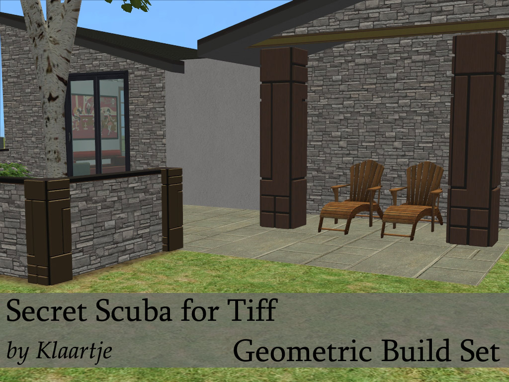 For the Secret Scuba, I really wanted to try and make my first proper mesh. Creating it from scratch proved a little too much, so I made my first ever TS3 to TS2 conversion. On Tiff's wishlist was a build set, I poked around in the TS3 files and conversion database and found a column that hadn't been converted yet as far as I know. Lee suggested to make a matching halfwall with the column as post and the Geometric Build Set was born!