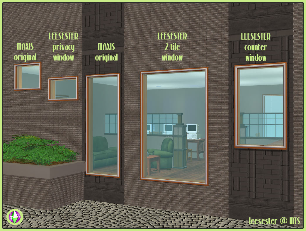 What do you get in THIS upload? A privacy window at a matching height, a two tile version of the original one tile window, and a one tile counter window. You NEED the Glamour Life SP for these to work.
