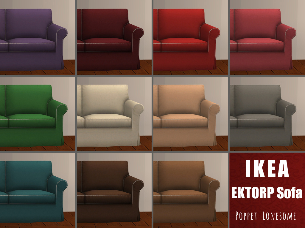 Recently, I've discovered the joy of Poppet's Lonesome palette and now I need more furniture in those colors. So as the third gift of my advent calendar I have for you the IKEA Ektorp sofa in Poppet's colors. I didn't include white and black because Ektorp already comes in those colors. You also might want to grab HugeLunatic's IKEA extra's so that all the Ektorp furniture picks up the recolors.