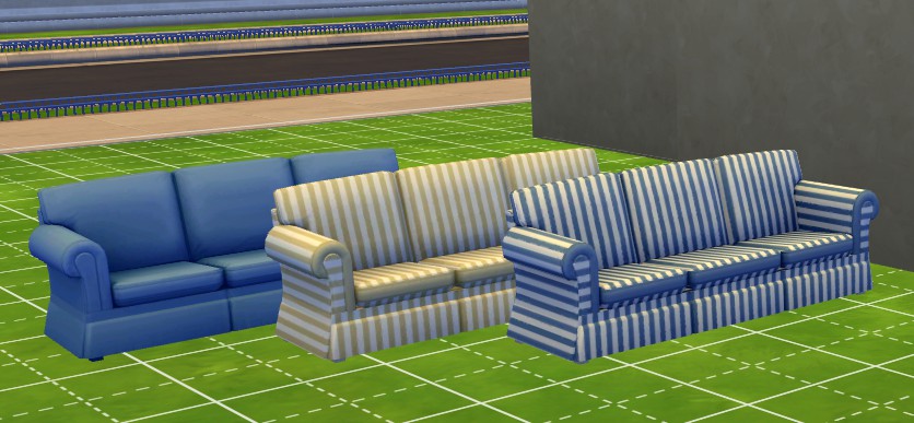The pic of all three couch colors; I have since made the stripes on the side under the arm go vertical, as it is in the S4S couch pic.