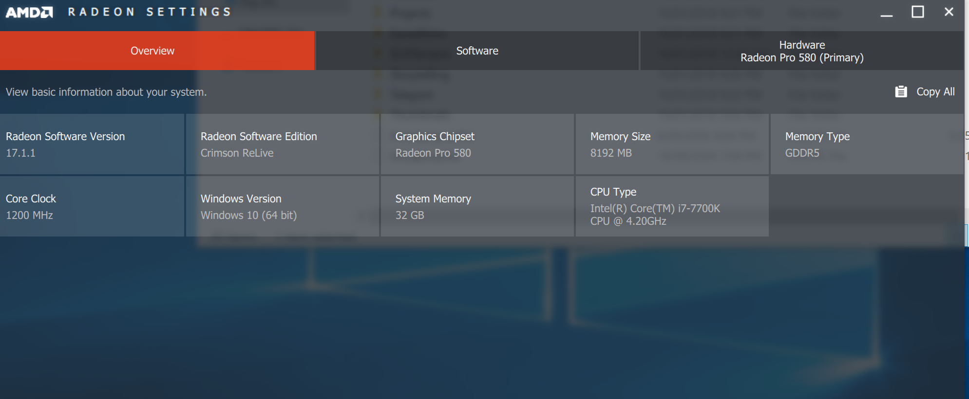 I have looked at the config-log but it doesn't say my video card is missing. I am attaching it as per instructions. I am also attaching a couple of screenshots of info about this set-up's video card that may be useful? It's a Radeon Pro 580